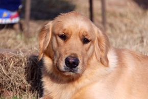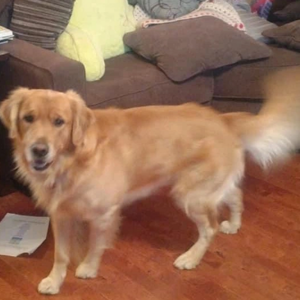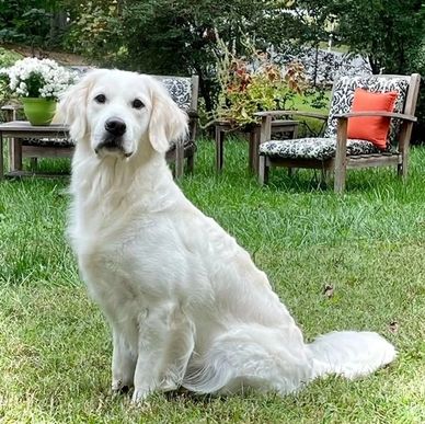 Finley is the epitome of a golden "Velcro" dog. He is light gold and always stays close to the family inside or out.